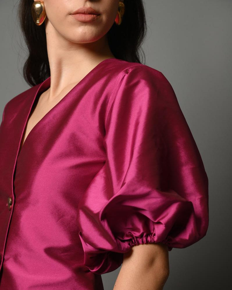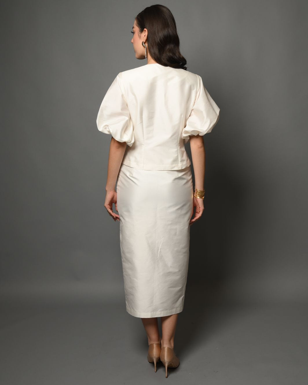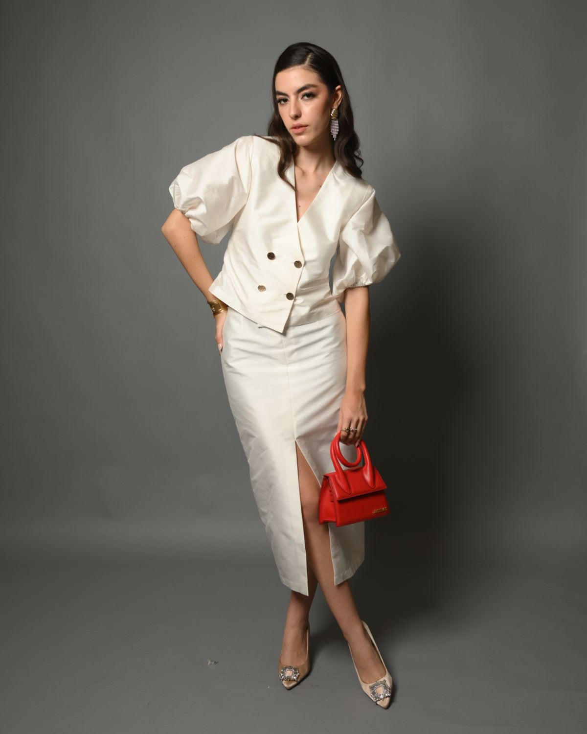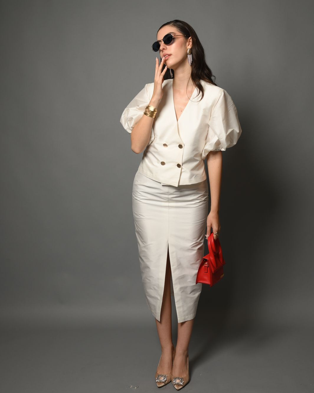 Bring the sunshine with SUNFLOWER, crafted in luminous butter-yellow Chanderi. The embroidered floral cutwork with pearl detailing across the waist and sleeves adds a delicate charm, while the relaxed silhouette keeps it modern and effortless. A vibrant statement for daytime festivities and beyond.