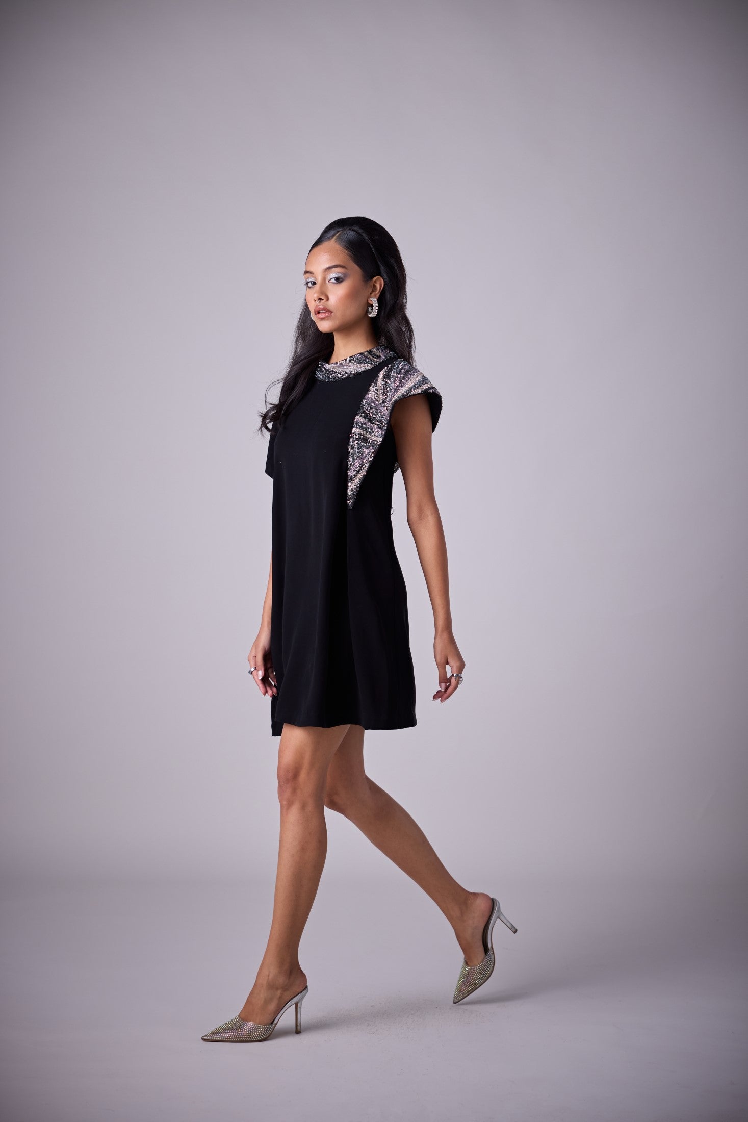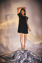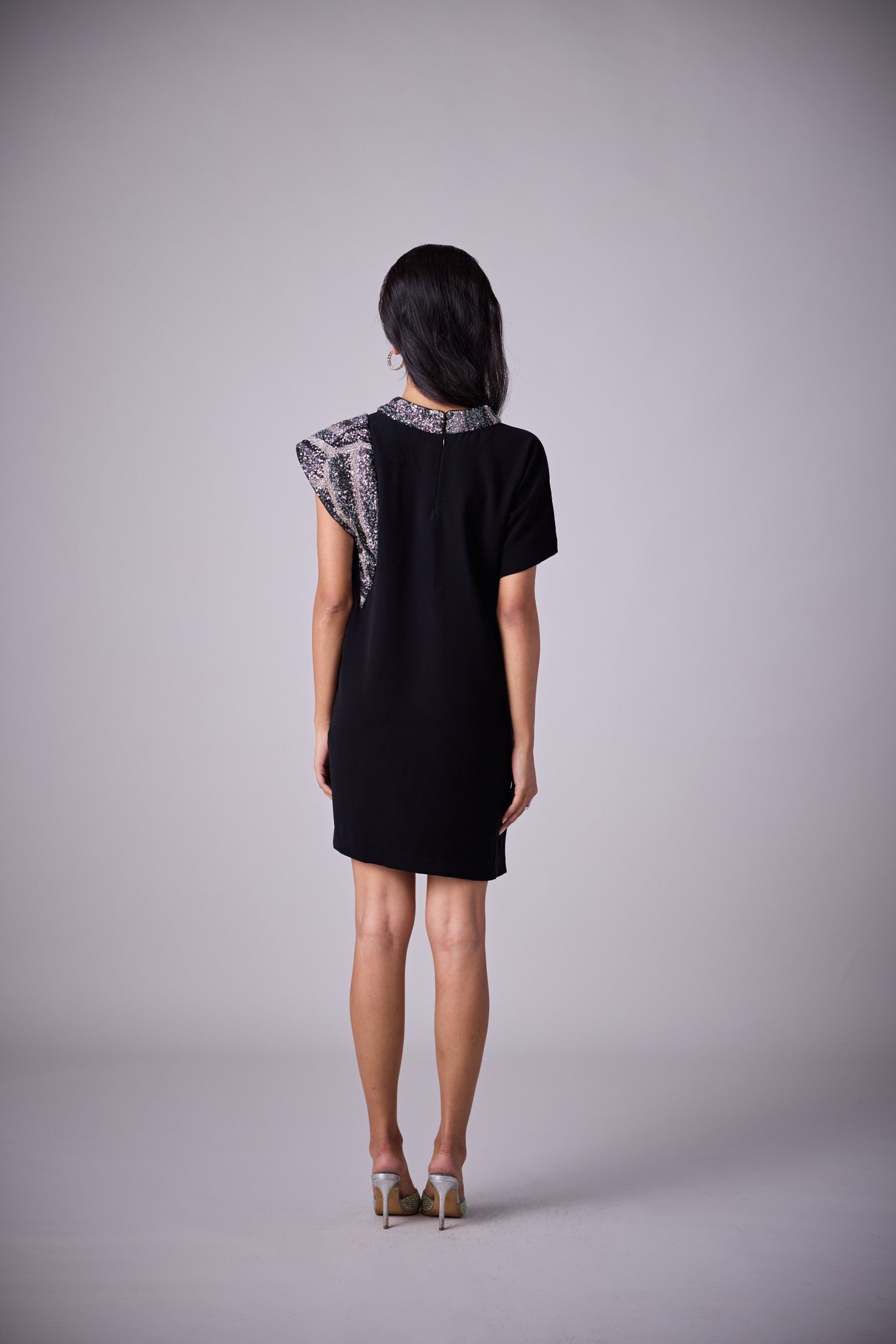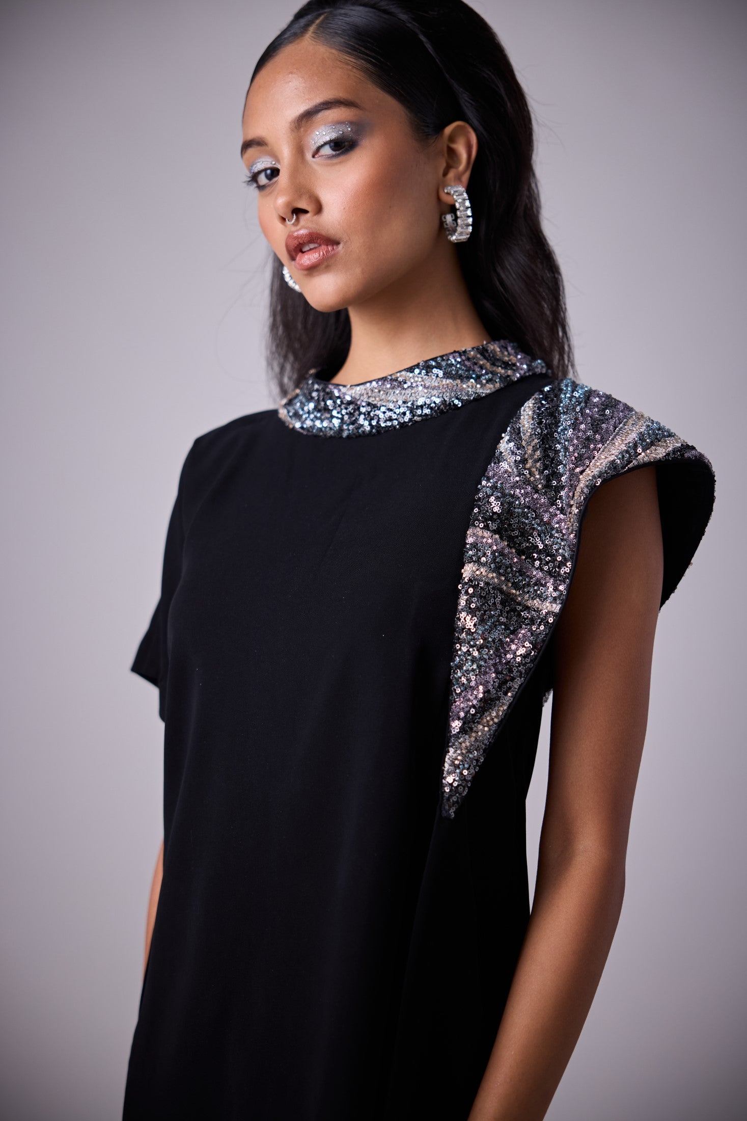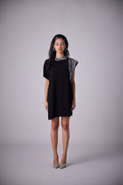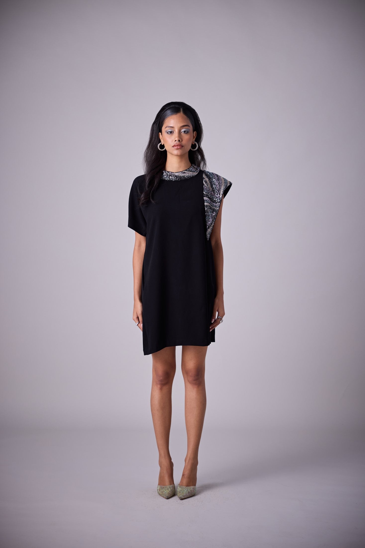 The party awaits in ELTON - a statement piece to be worn from dusk till dawn. This oversized dress with kimono sleeves on one side and an embellished panel with inverted box pleat on the other will make you feel like the centre of attention instantly.