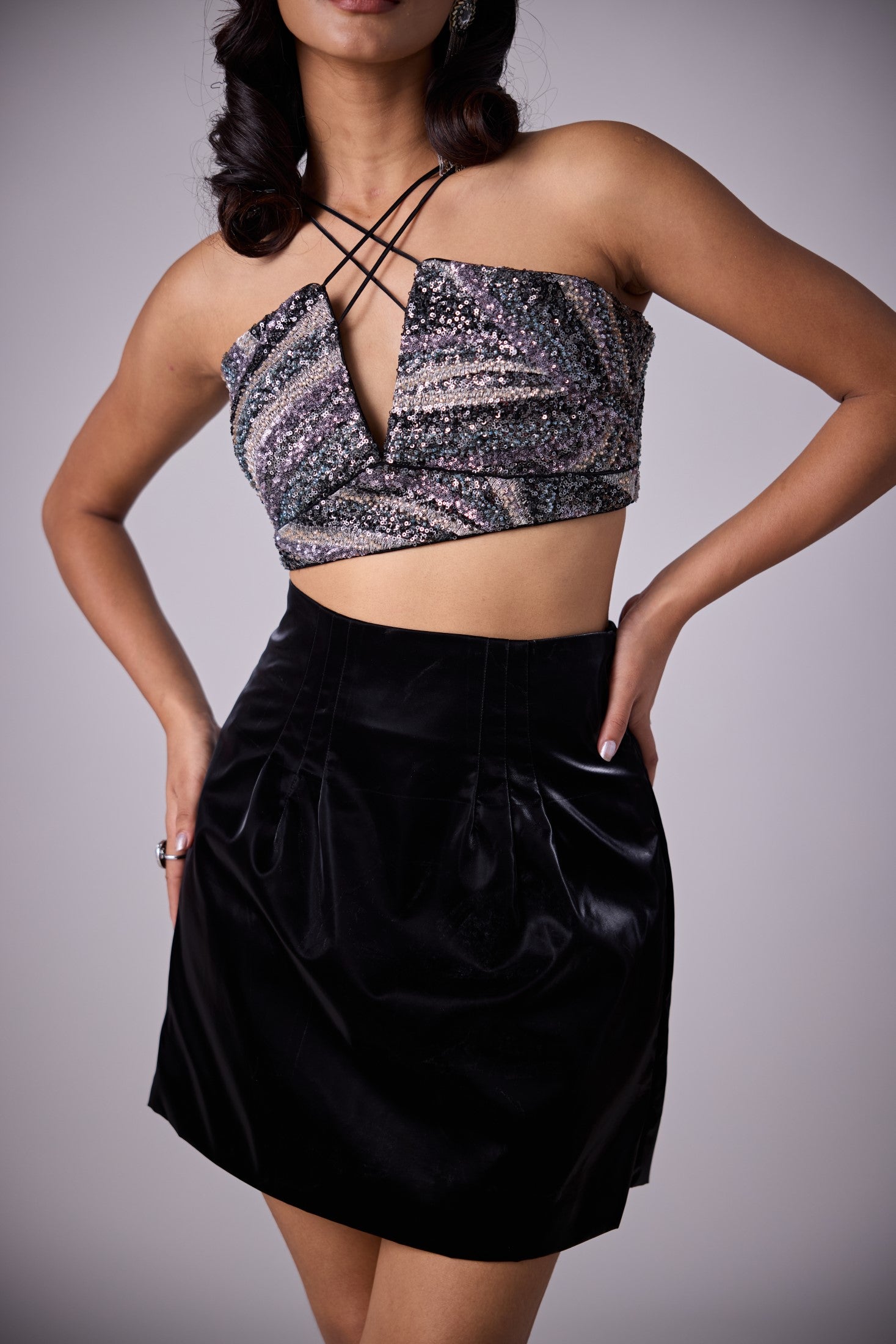 GRACE has arrived and what a beauty she is. Flirty and fun this leatherite skirt will have you dancing the night away. Fitted to the waist and a detailing hemline you will stand out from the crowd. Why not complete the look and pair with our JIVE top?