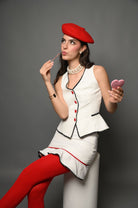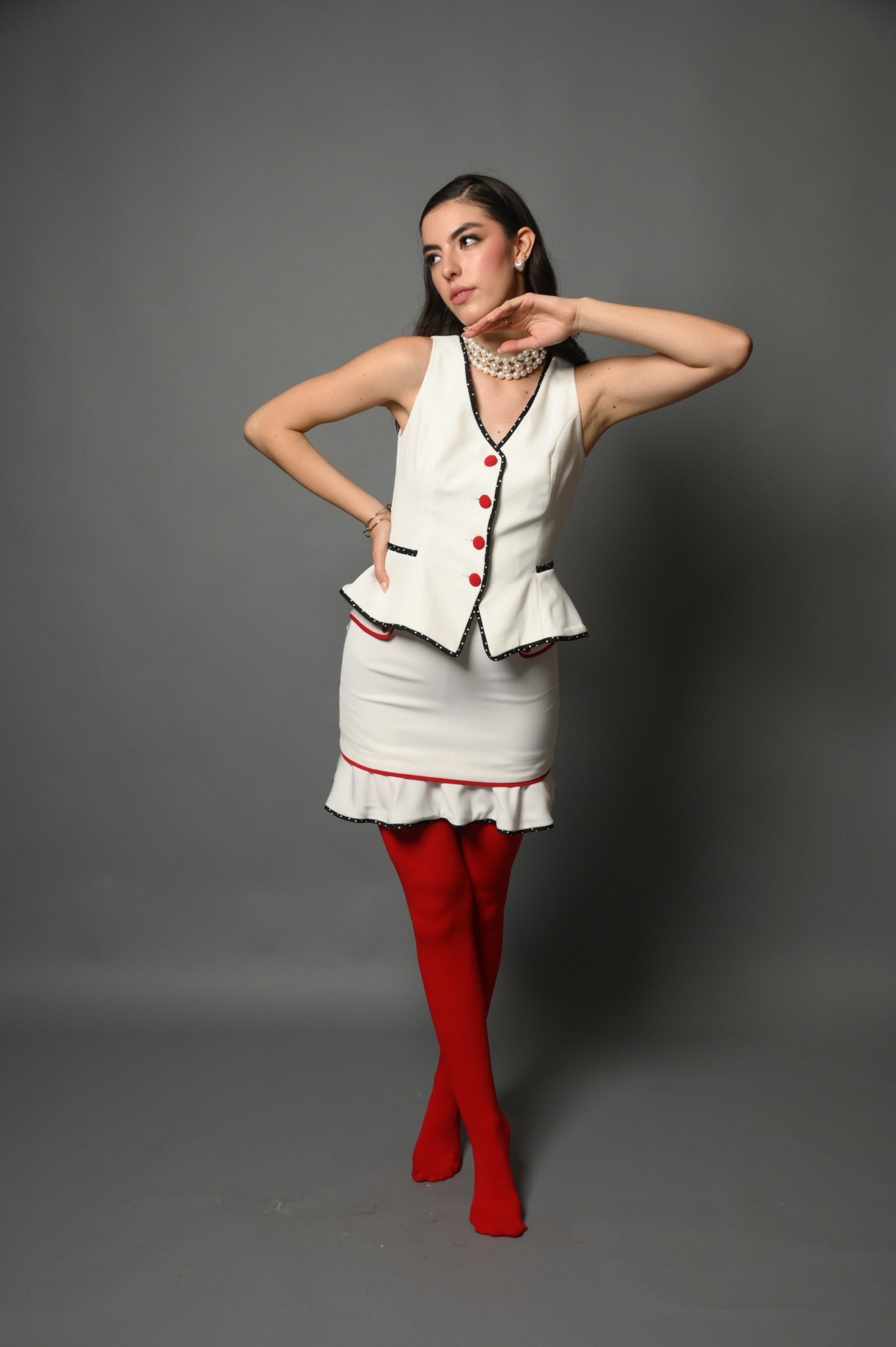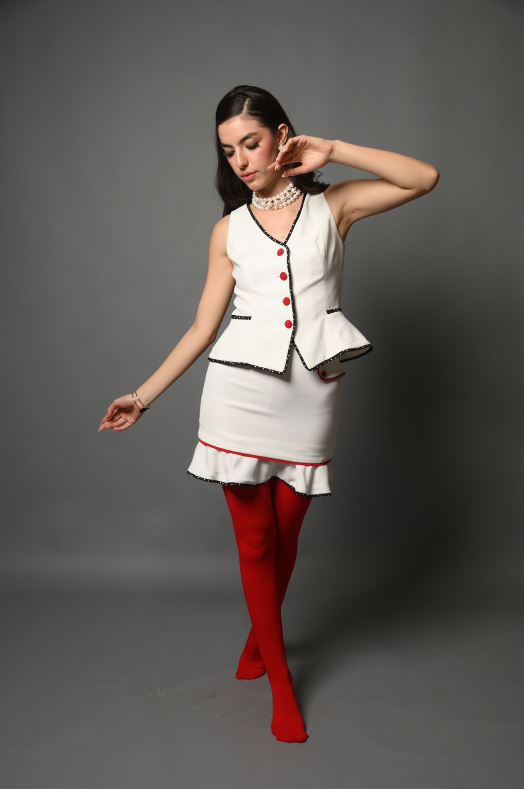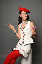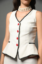 CUPID is a figure-flattering single-breasted tailored waistcoat crafted from our exclusive white crepe fabric, featuring non-functional pockets, silhouette-enhancing seam detailing, and is finished with four-button fastenings.