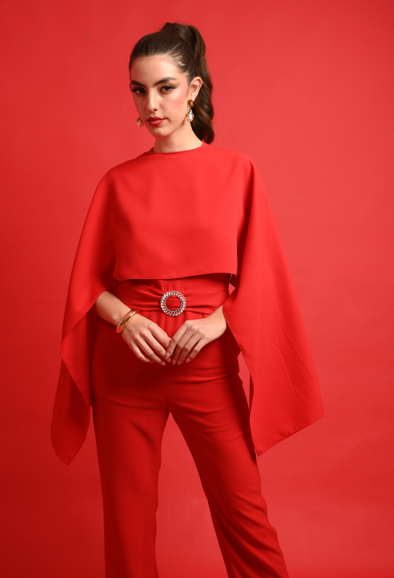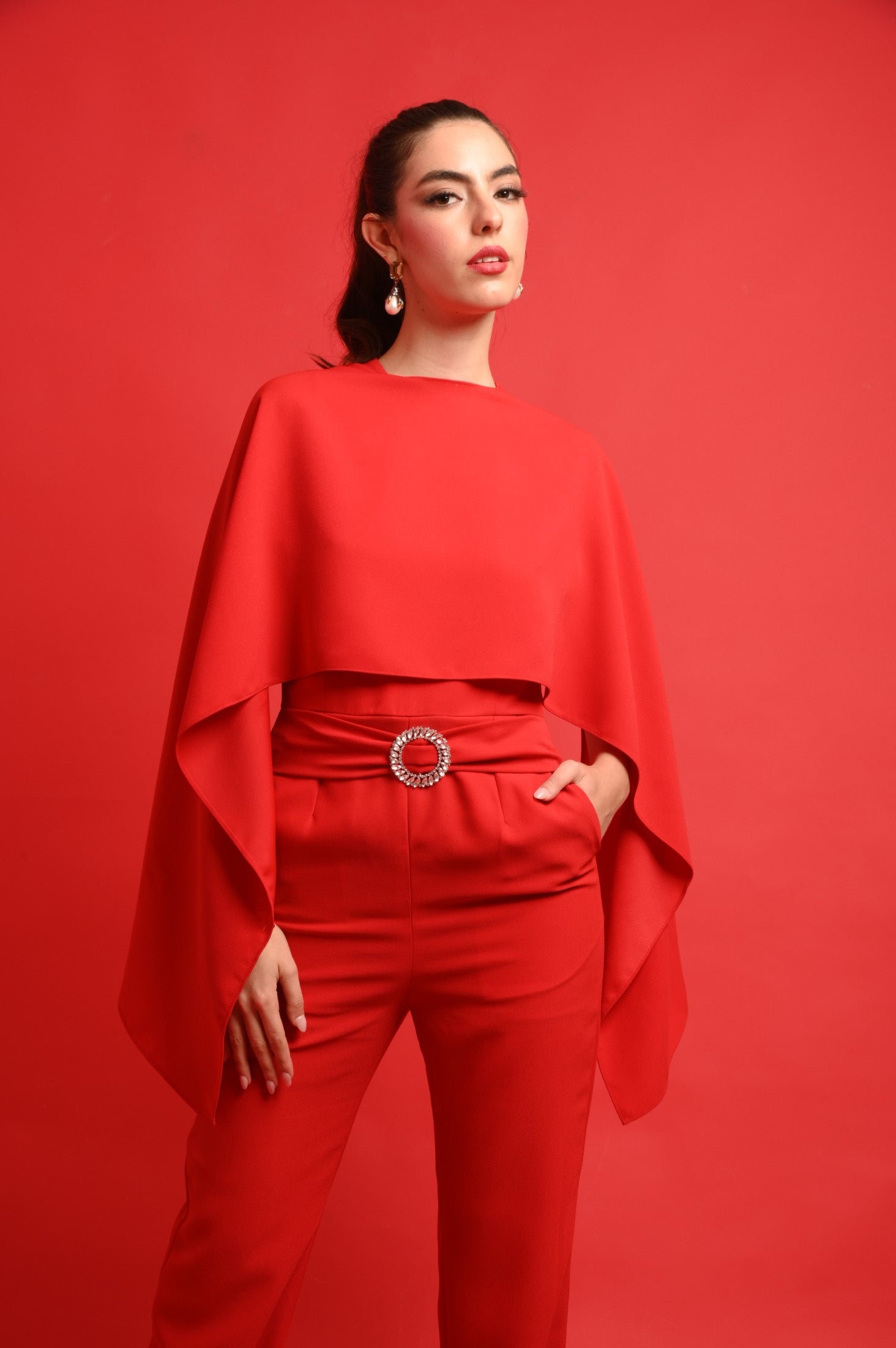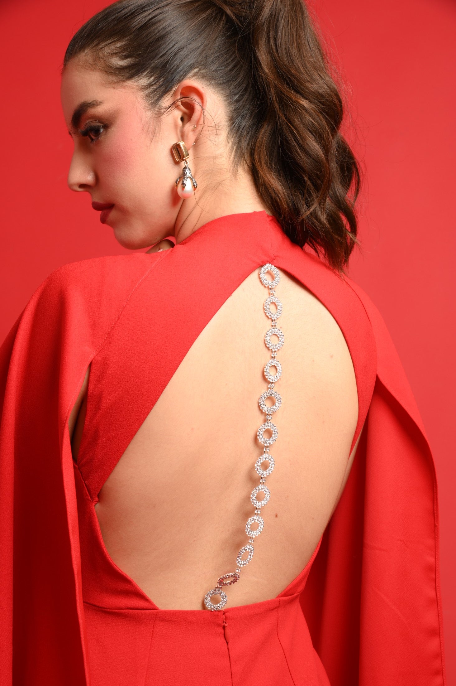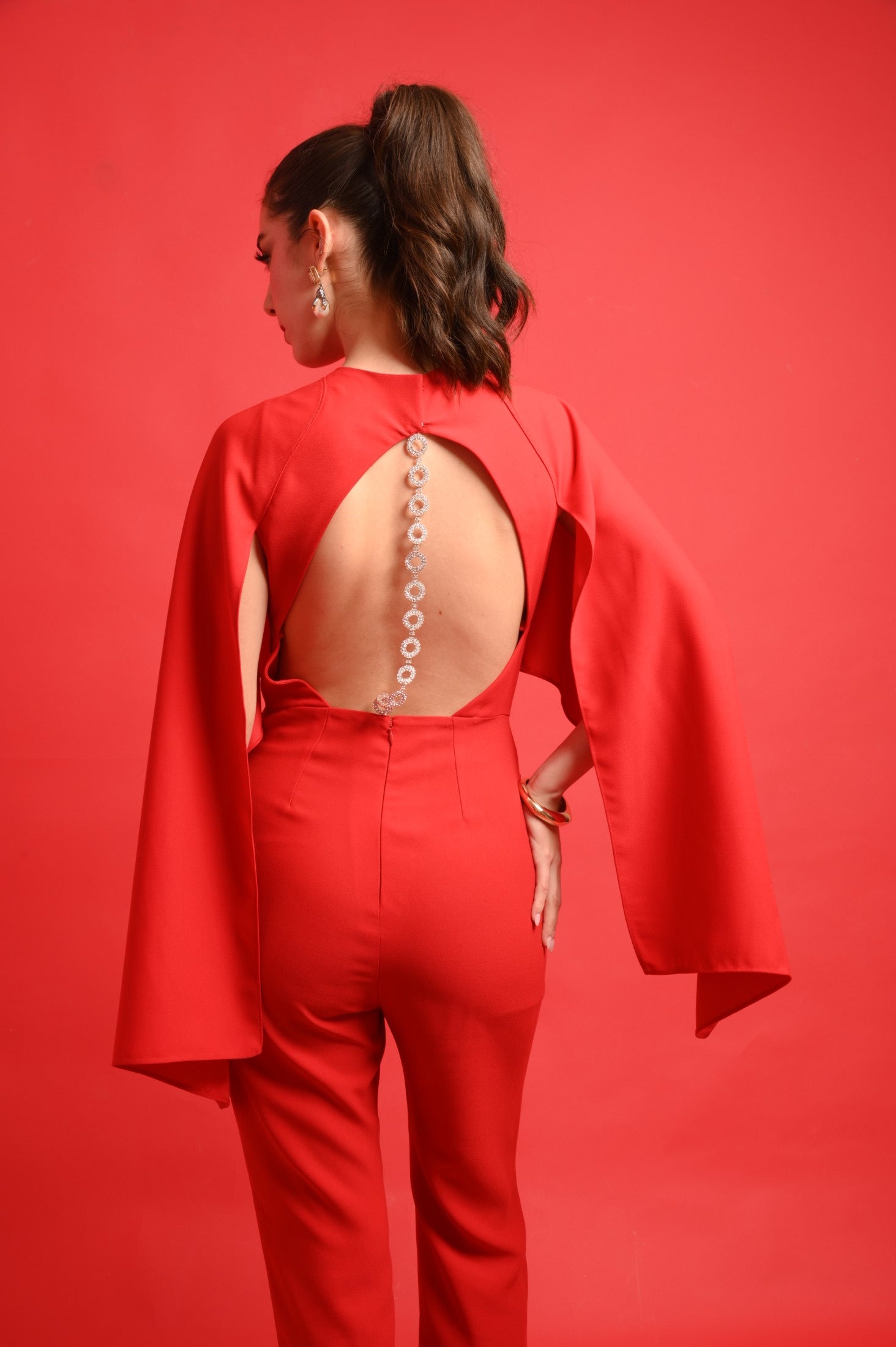 JULIET is an elegant, feminine jumpsuit featuring an open back with diamente encrusted detailings and a crystal buckle in the front. This style is finished with a concealed zip closure to the centre back. The open back adds an element of intrigue, ensuring you stand out from every angle.