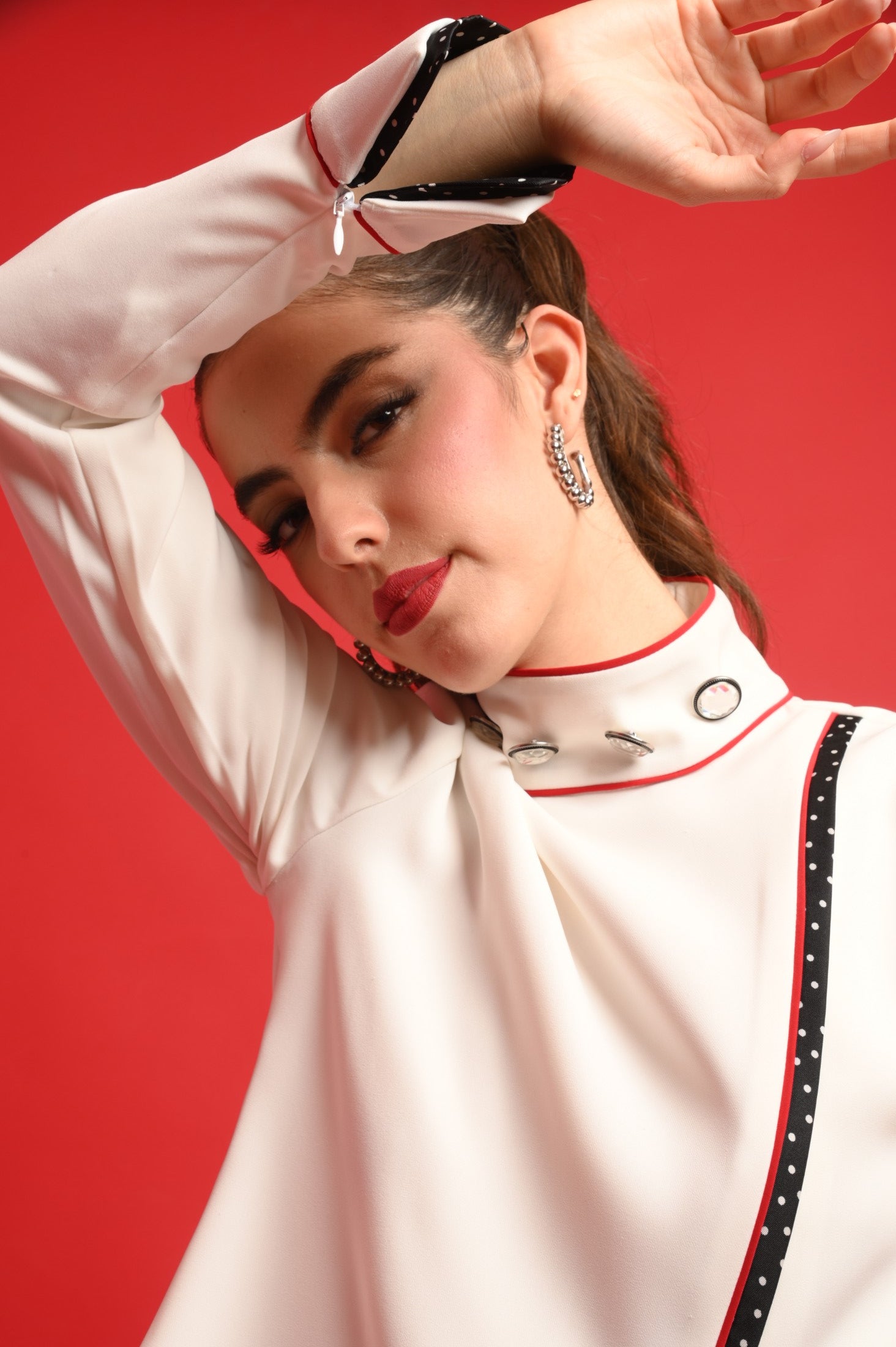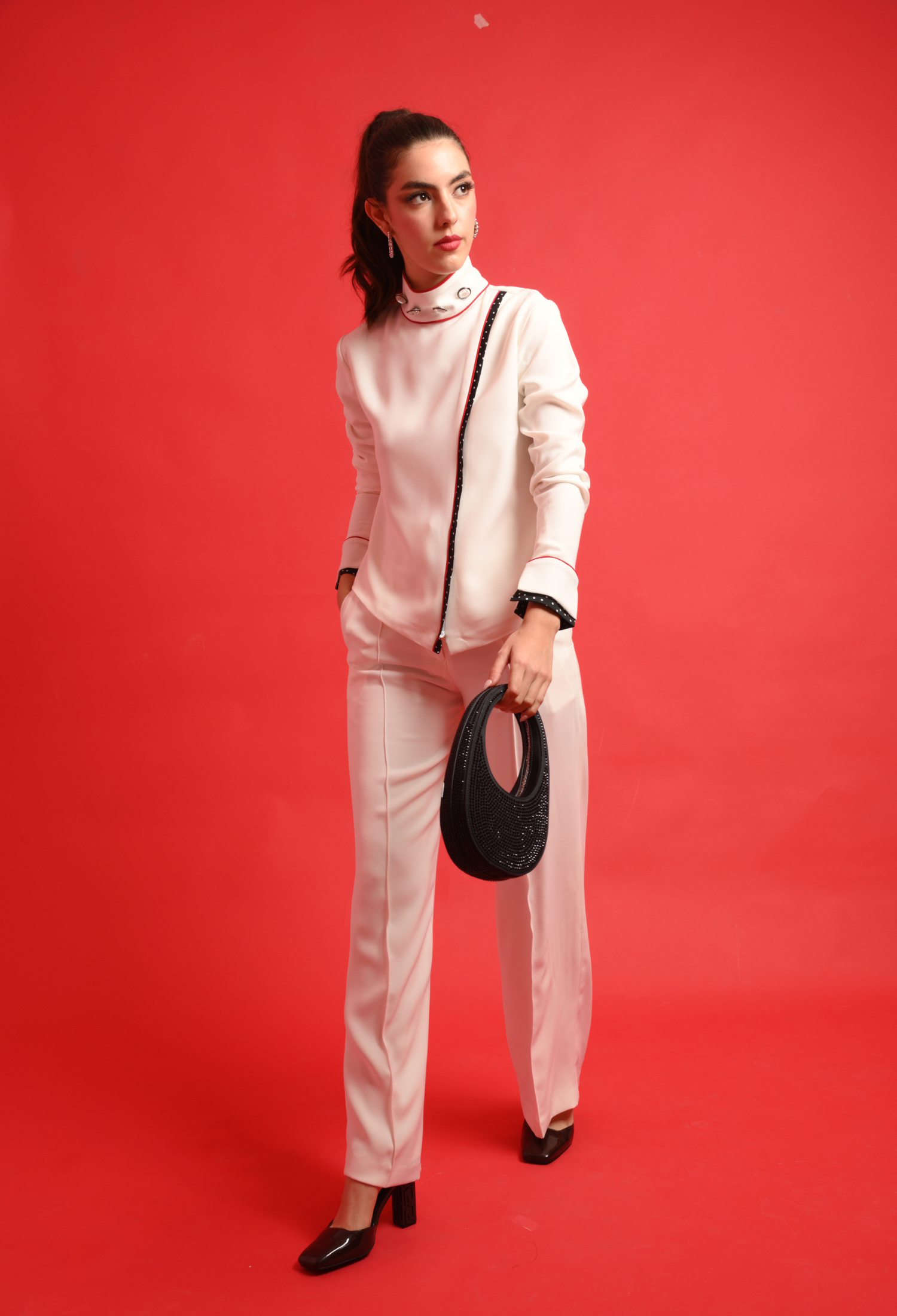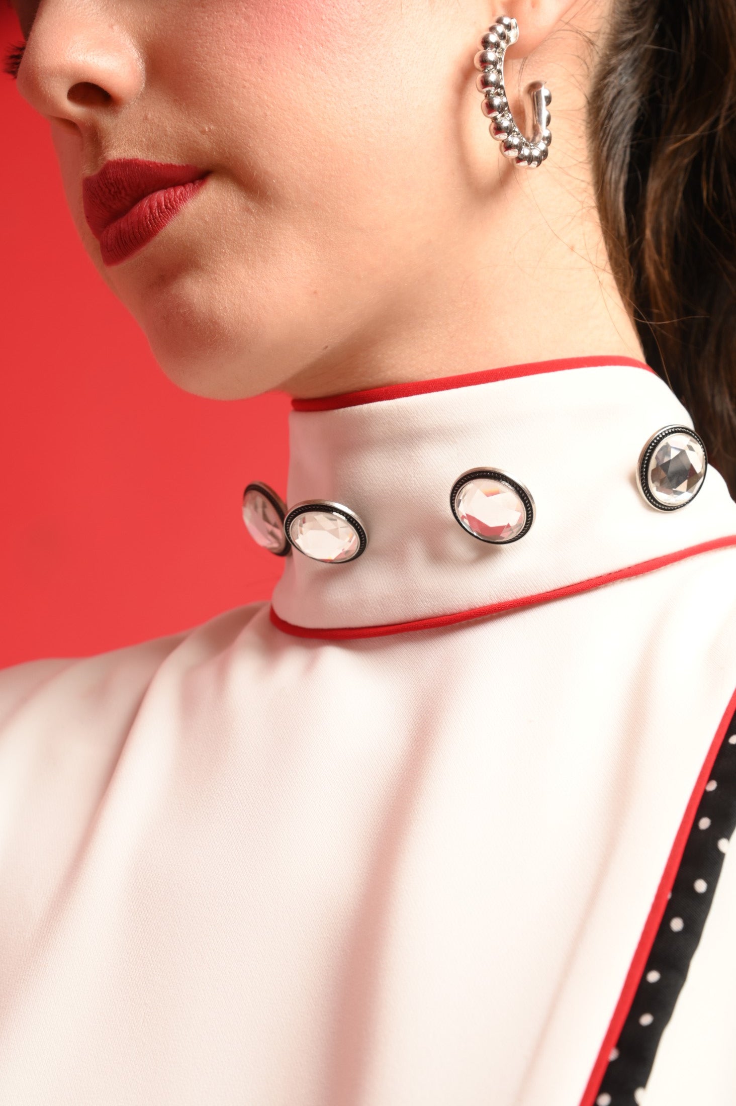 The STELLA top is a chic staple that elevates your wardrobe effortlessly. The intricate mix of polka and crystal embellishments adorns this top, creating a modern look. The top features an enclsed zip to the front giving the piece a versatile flair.