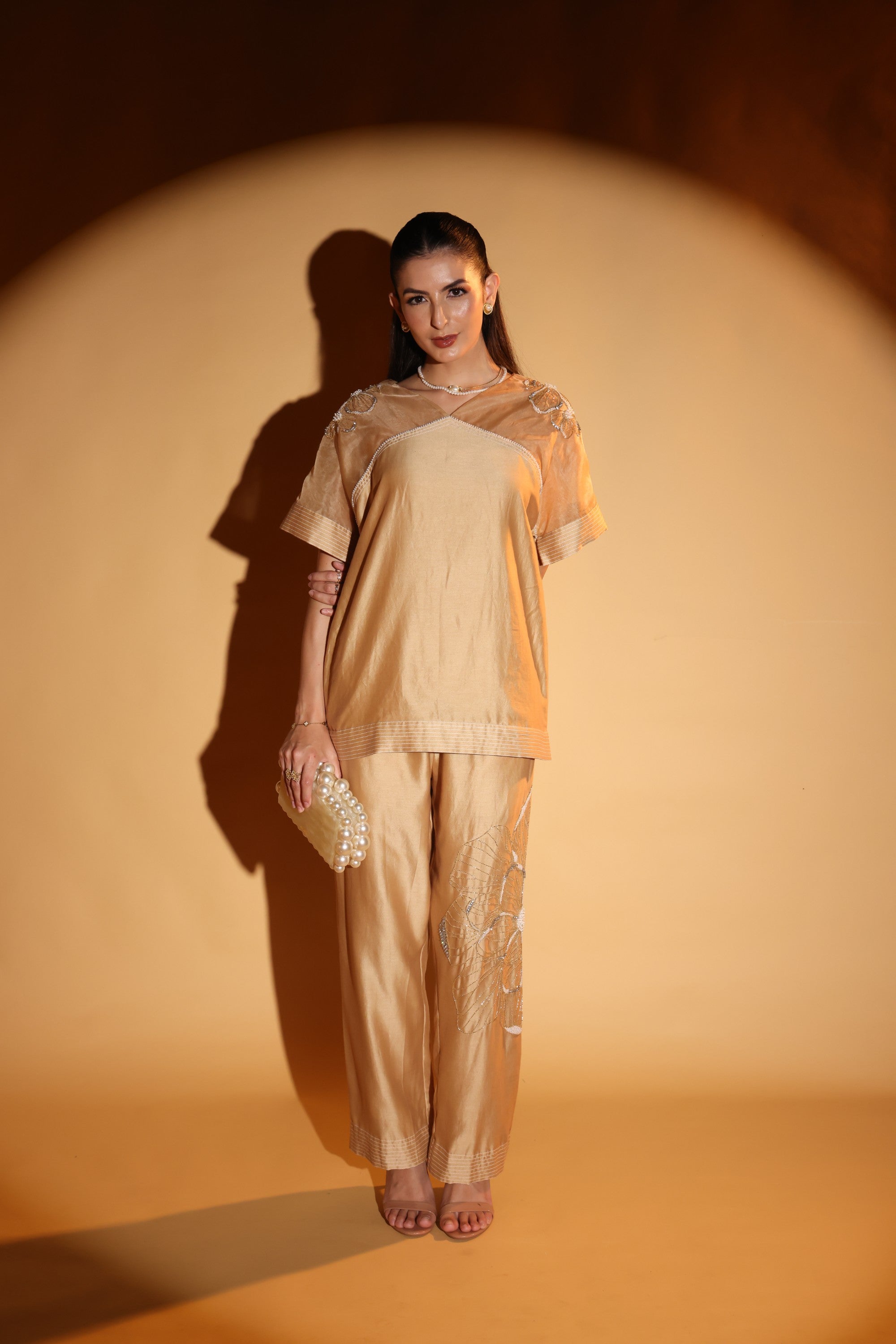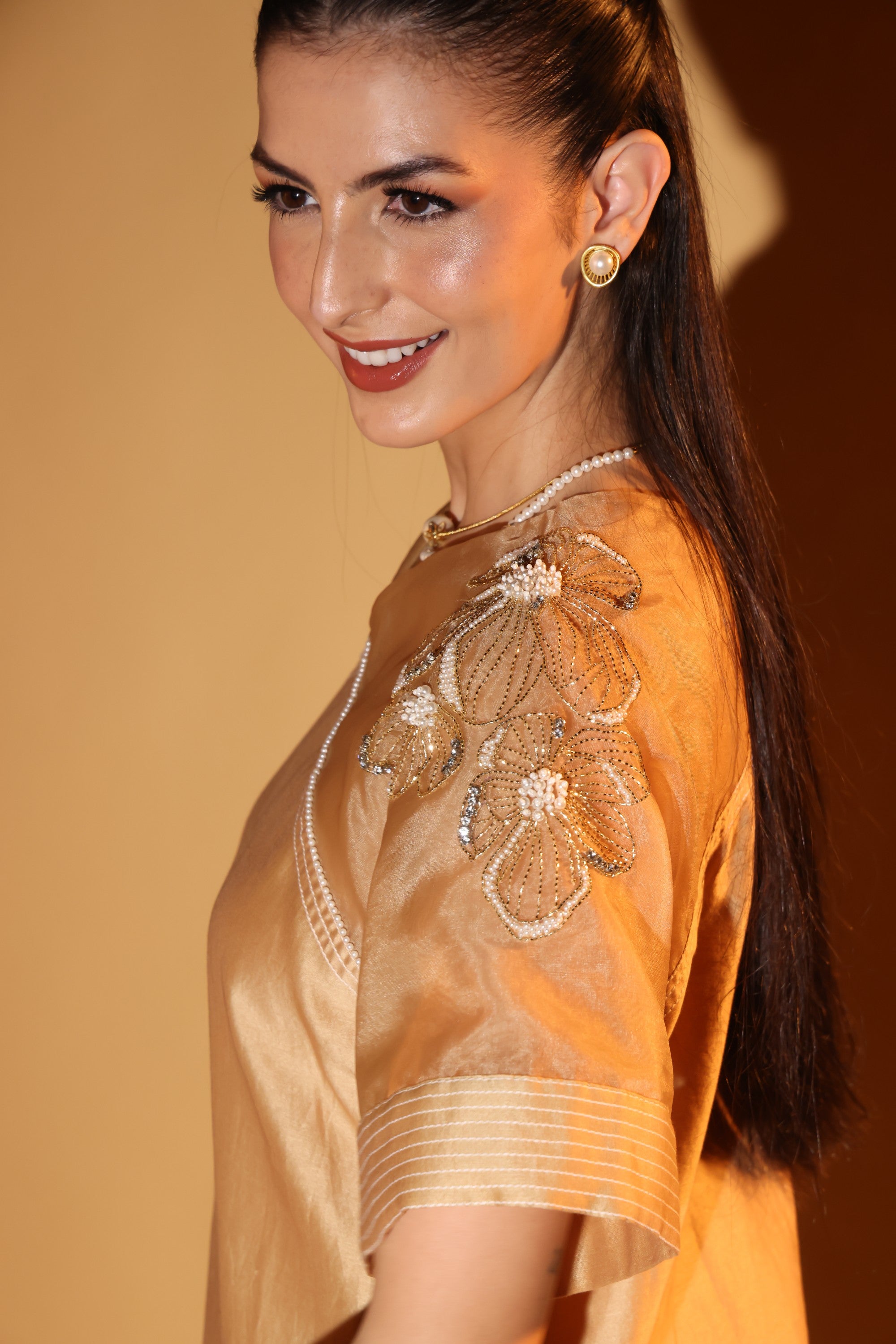 MARIGOLD is designed for understated glamour. Embellished with delicate floral beadwork on the shoulder and trousers, this relaxed-kimono style set is a versatile piece that takes you from intimate gatherings to grand celebrations.