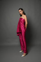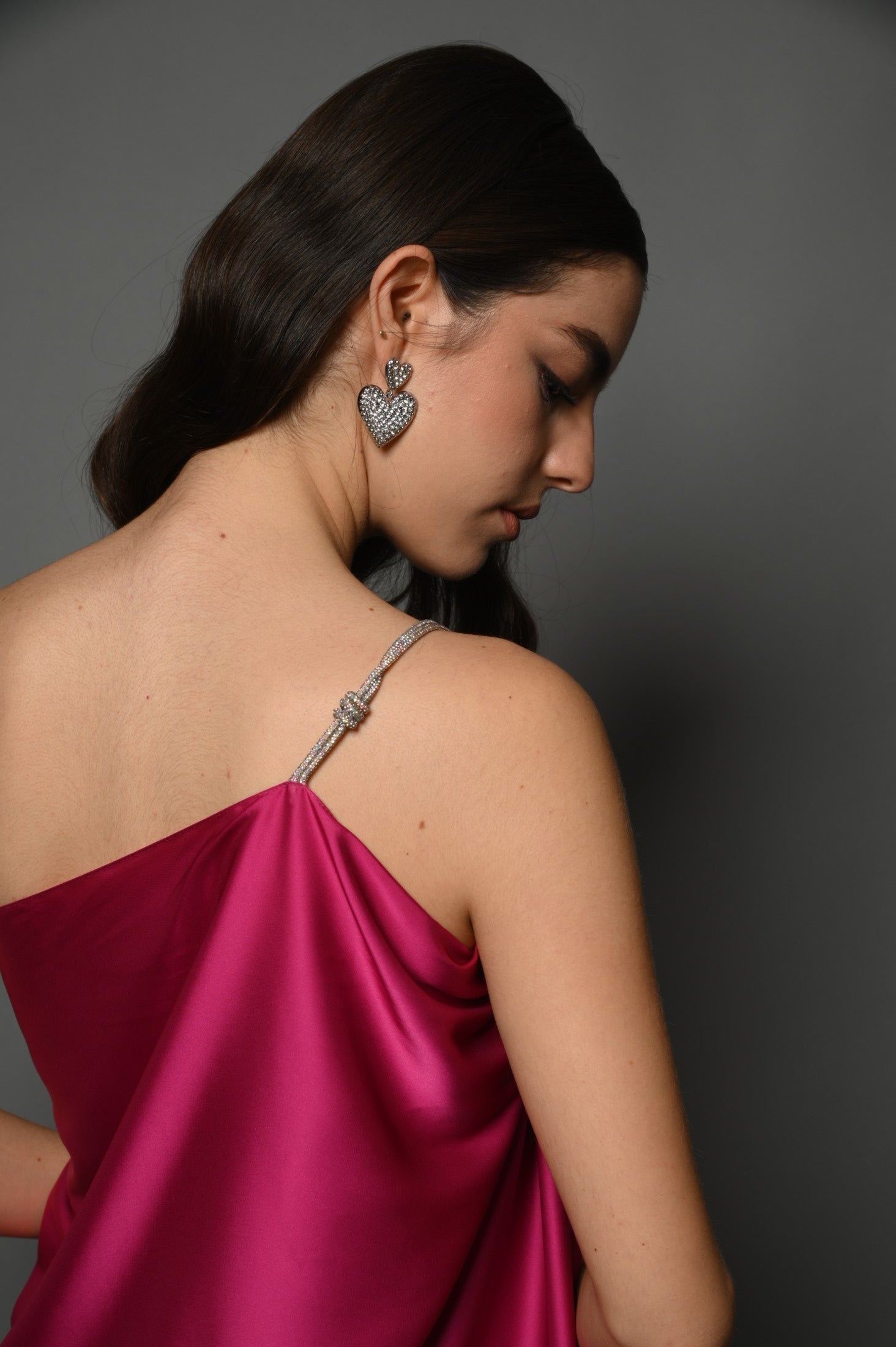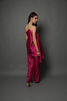 All celebrations covered in ROSE. Lounge in luxury in this set - the perfect gift for yourself or a loved one. Crafted in soft-touch satin and featuring shimmering diamanté-encrusted detailing on one shoulder.